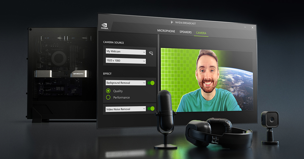 The NVIDIA Broadcast app uses artificial intelligence to improve remote learning. Audio noise and room echo removal make it easier to listen to and engage in online lectures. Virtual background, auto frame, and video noise removal take your webcam to the next level. Use the app to look more professional when giving presentations, collaborating with lab partners, or working with study groups.