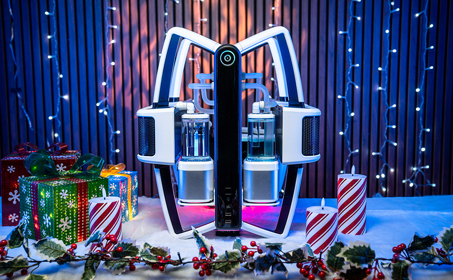Win this snow-white Origin PC ARACHNID — because even Santa upgrades his sleigh when the holiday lights hit.