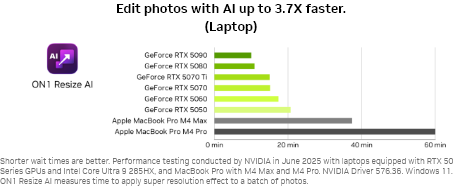 Shoot, edit, and deliver faster in 4k, 8k, and even 12k, saving time and effort. Accelerate AI effects with Tensor Cores on RTX GPUs, edit 4:2:2 multi-camera content with GPU optimization, and export videos in a fraction of the time using up to three dedicated encoders on RTX 5090 GPUs.